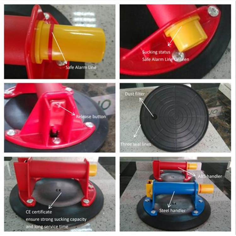 用于吸附非滲漏平滑表面,4次按壓吸附,一鍵放氣,安全指示紅線可隨時發(fā)現(xiàn)泄漏