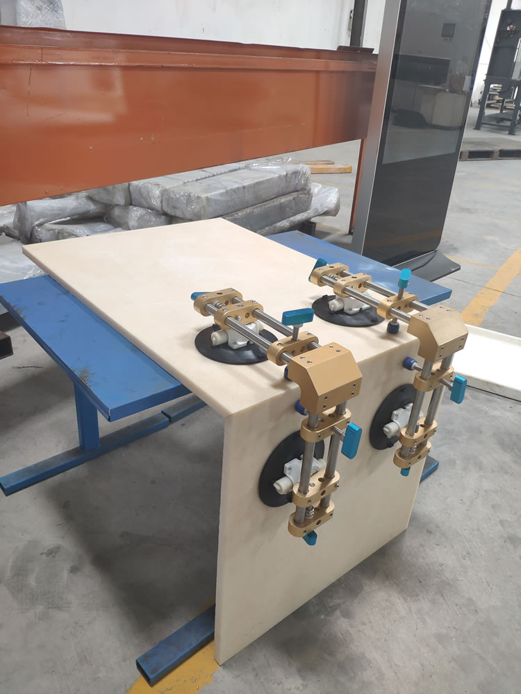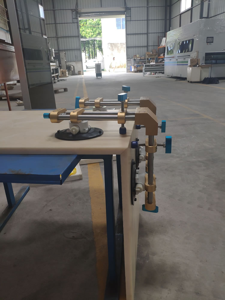 It is designed to make two workpieces at bevel 45°to be a 90°angle for various materia quartz, natural stone or other similar stone material and be widely used for kitchen island and bar counter.