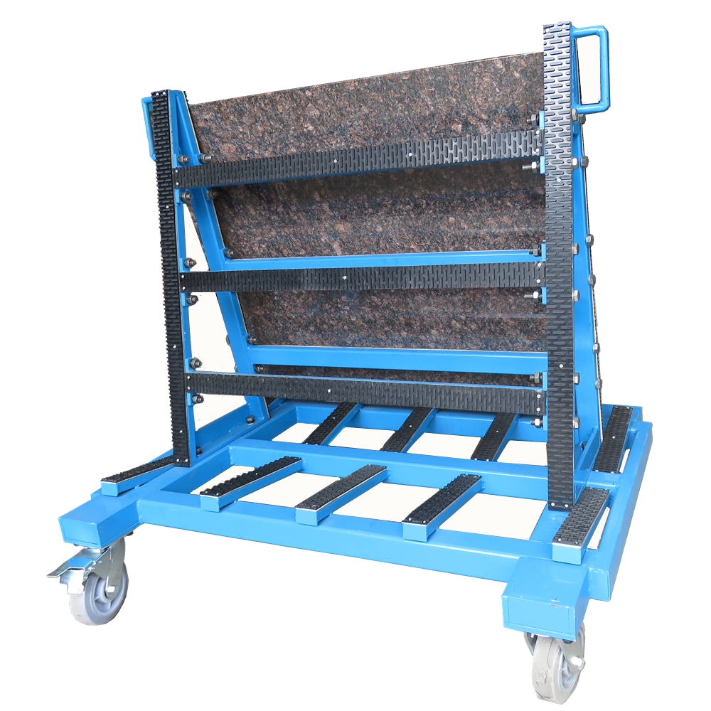 This design is used for the transportation and storage of the plate inside and outside the factory area. The surface of the bracket is covered with a rubber layer to protect the plate scratch.