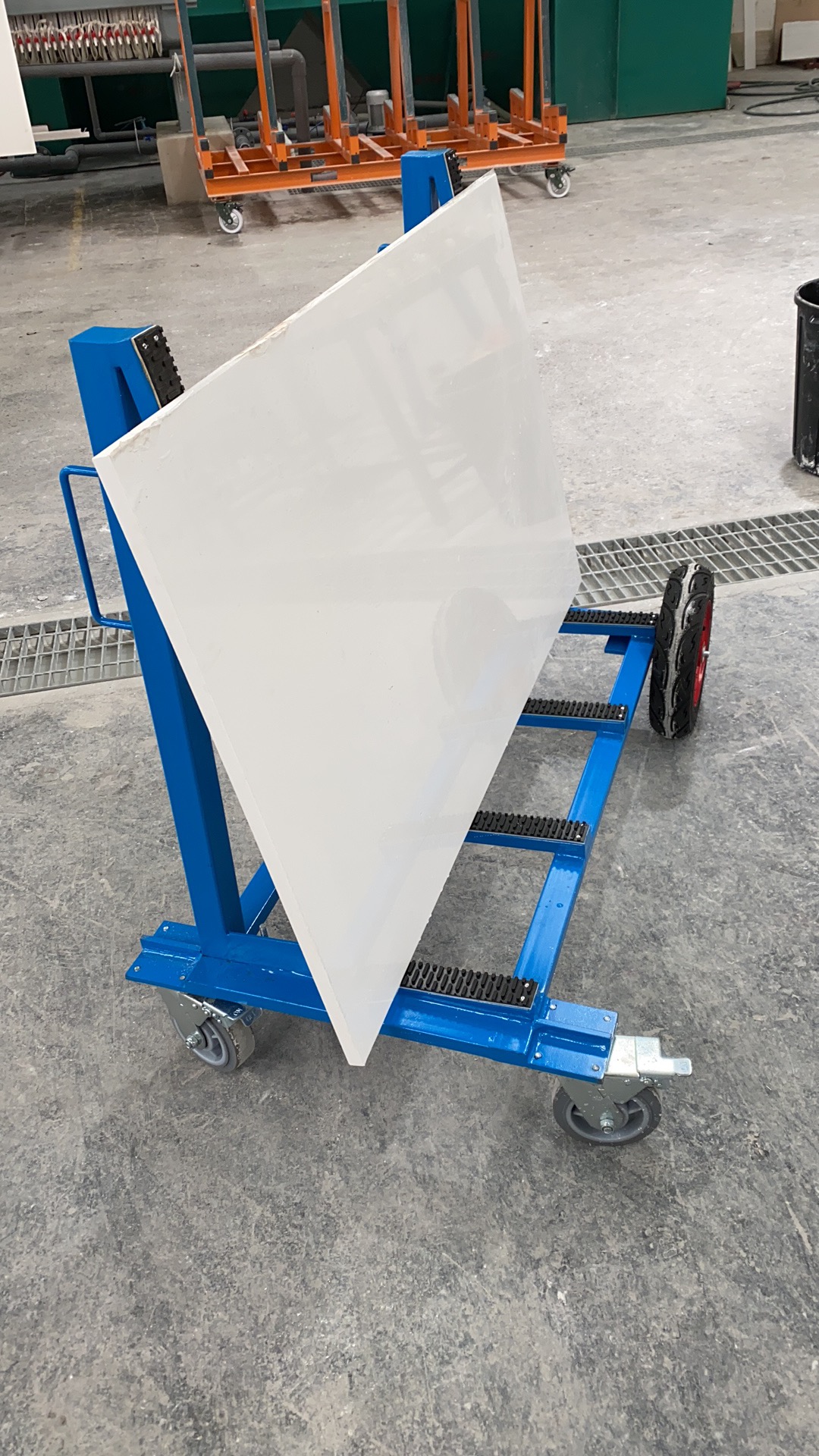 This design is used for the transportation and storage of the plate inside and outside the factory area. The surface of the bracket is covered with a rubber layer to protect the plate scratch.